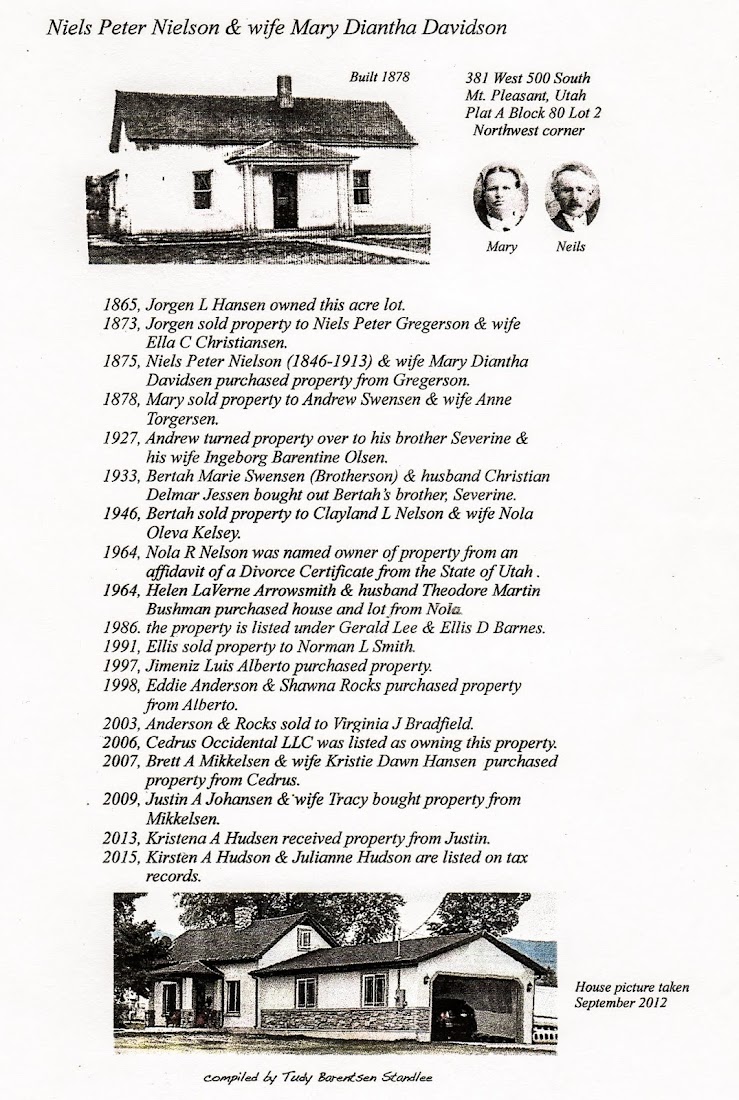 Home of Niels Peter Nielson and wife Mary Diantha Davidson